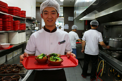 勺园二层的师傅正在讲解大盘鸡的制作方法