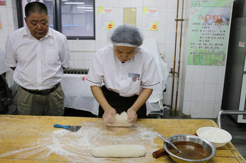 燕南美食的师傅正在演示麻酱糖饼的制作方法