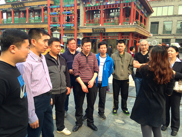 2015年10月14日下午,餐饮中心组织中青年技术骨干培训班学员前往前门步行街,开展了以“赏京城美景,品美食文化”为主题的培训活动。此次培训由餐饮中心党总支、工会联合组织,特邀我校政府管理学院具有丰富讲解经验和历史文化知识的青年志愿者同学担任活动策划和讲解,中青年技术骨干学员及党总支、工会干部等17人参加了本次活动。