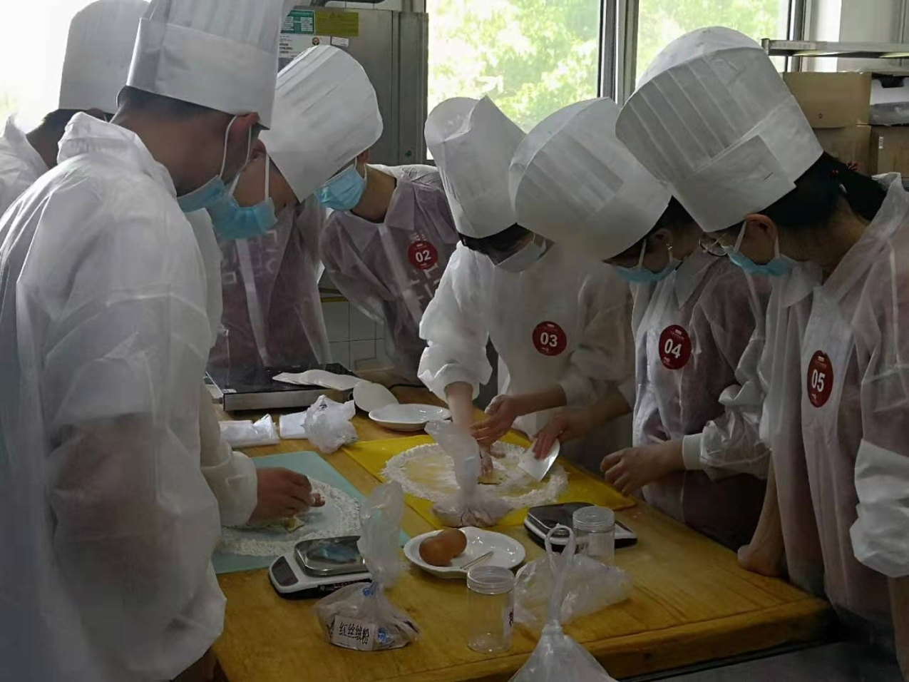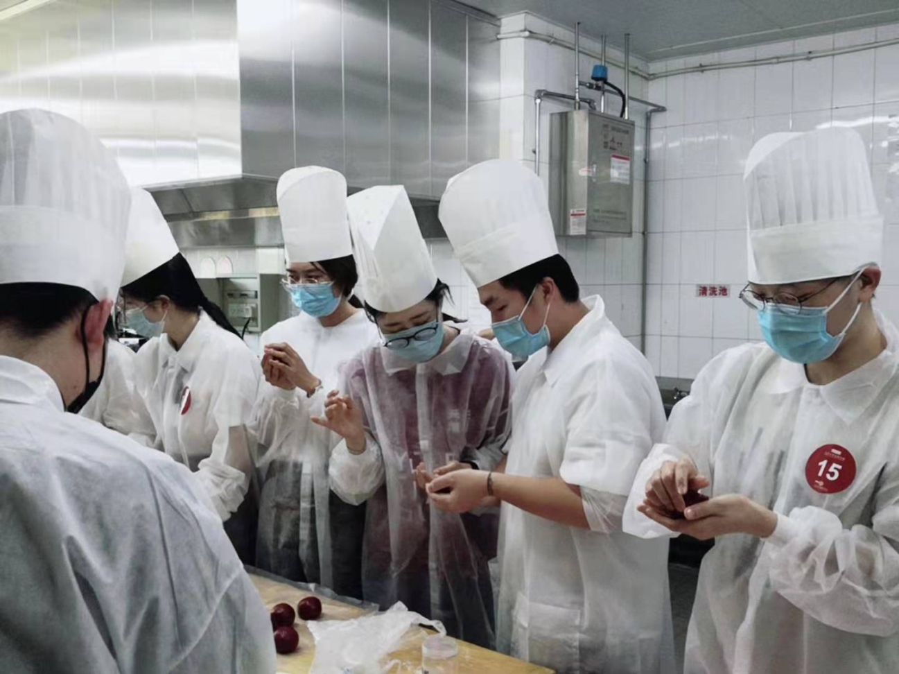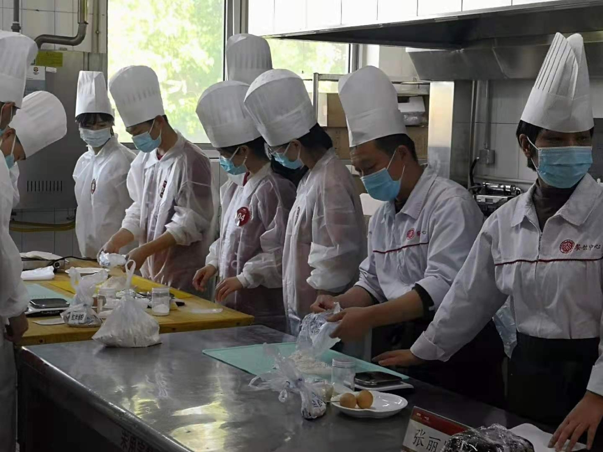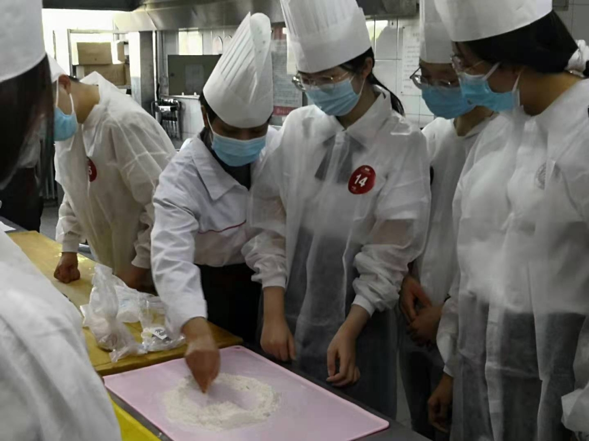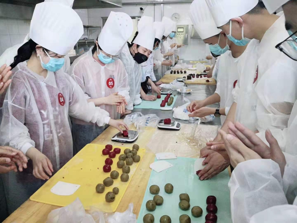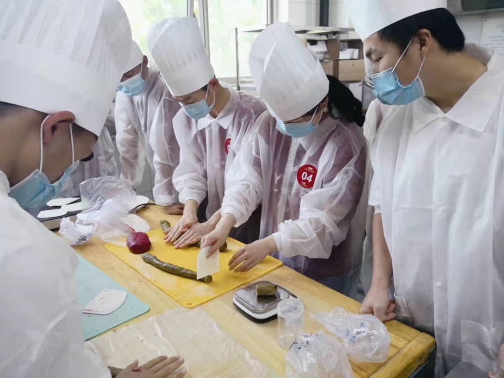 餐饮中心实习生赵加龙指导元培学院的同学一起动手制作