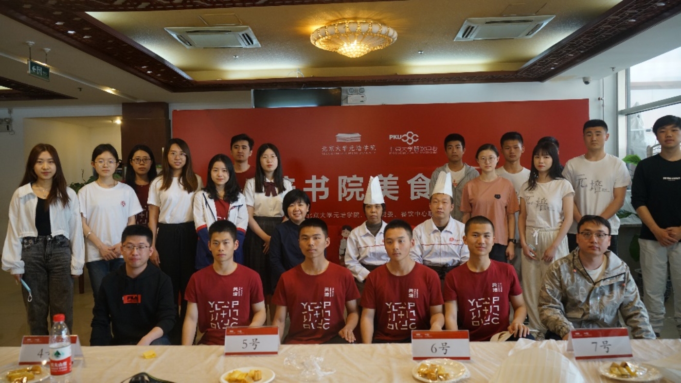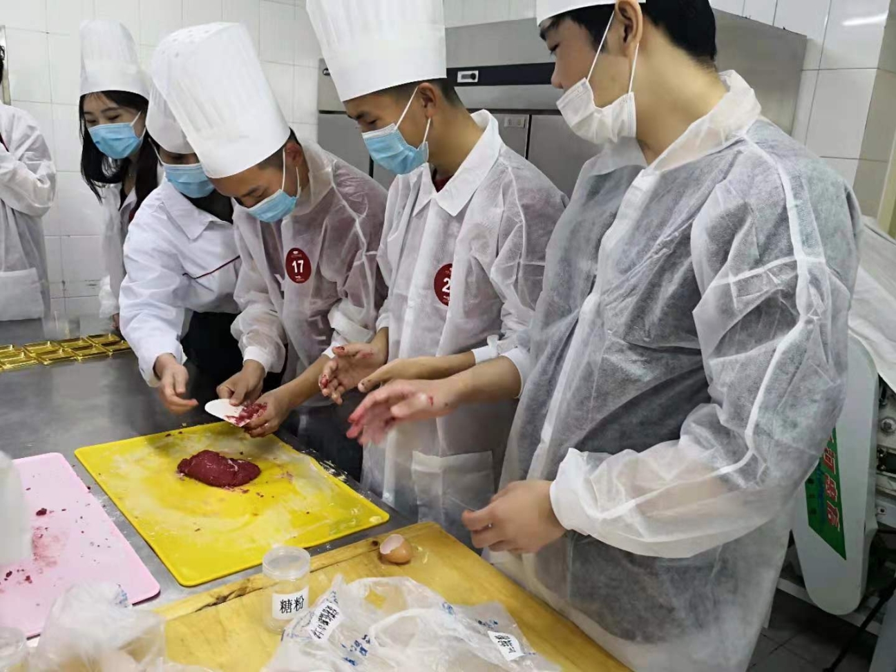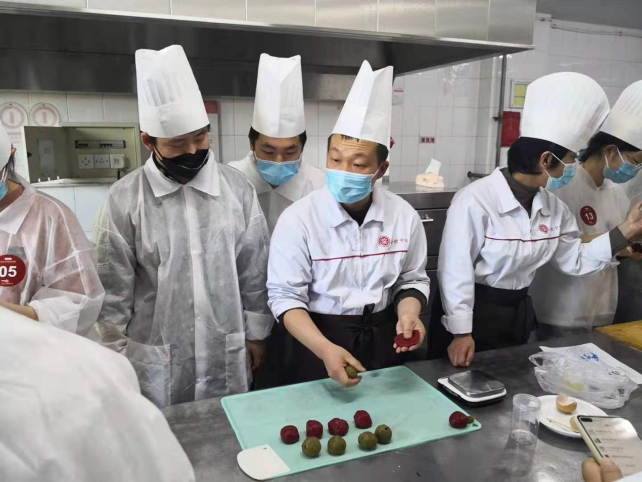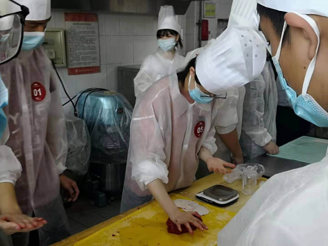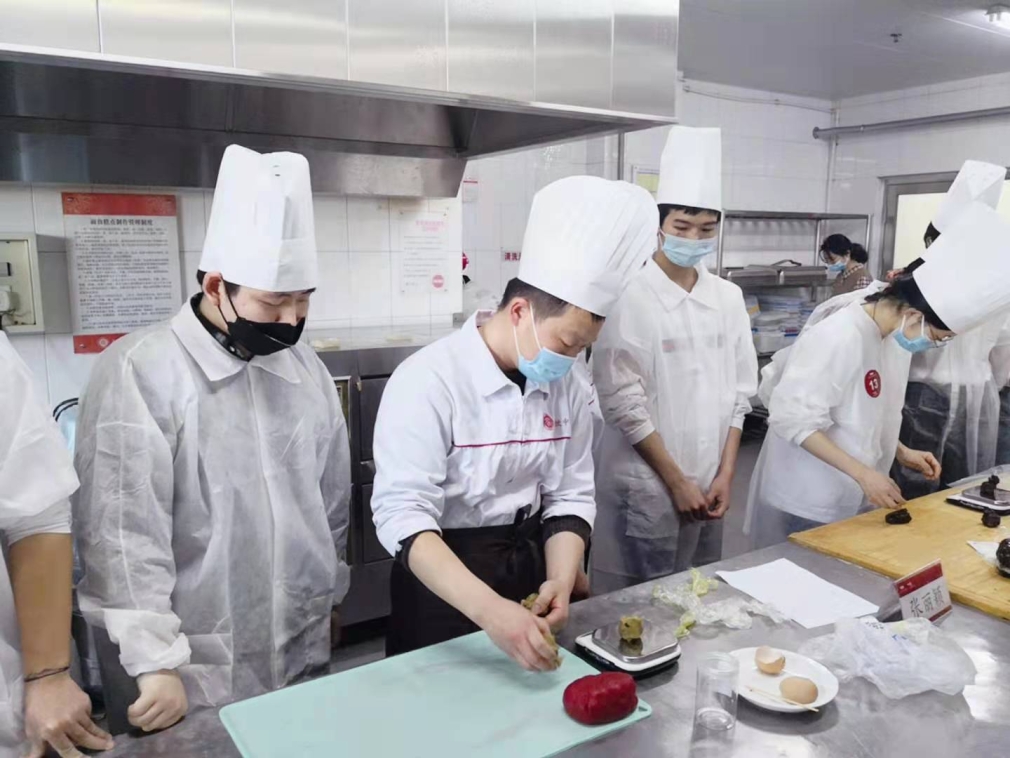 餐饮中心实习生赵加龙指导元培学院的同学一起动手制作