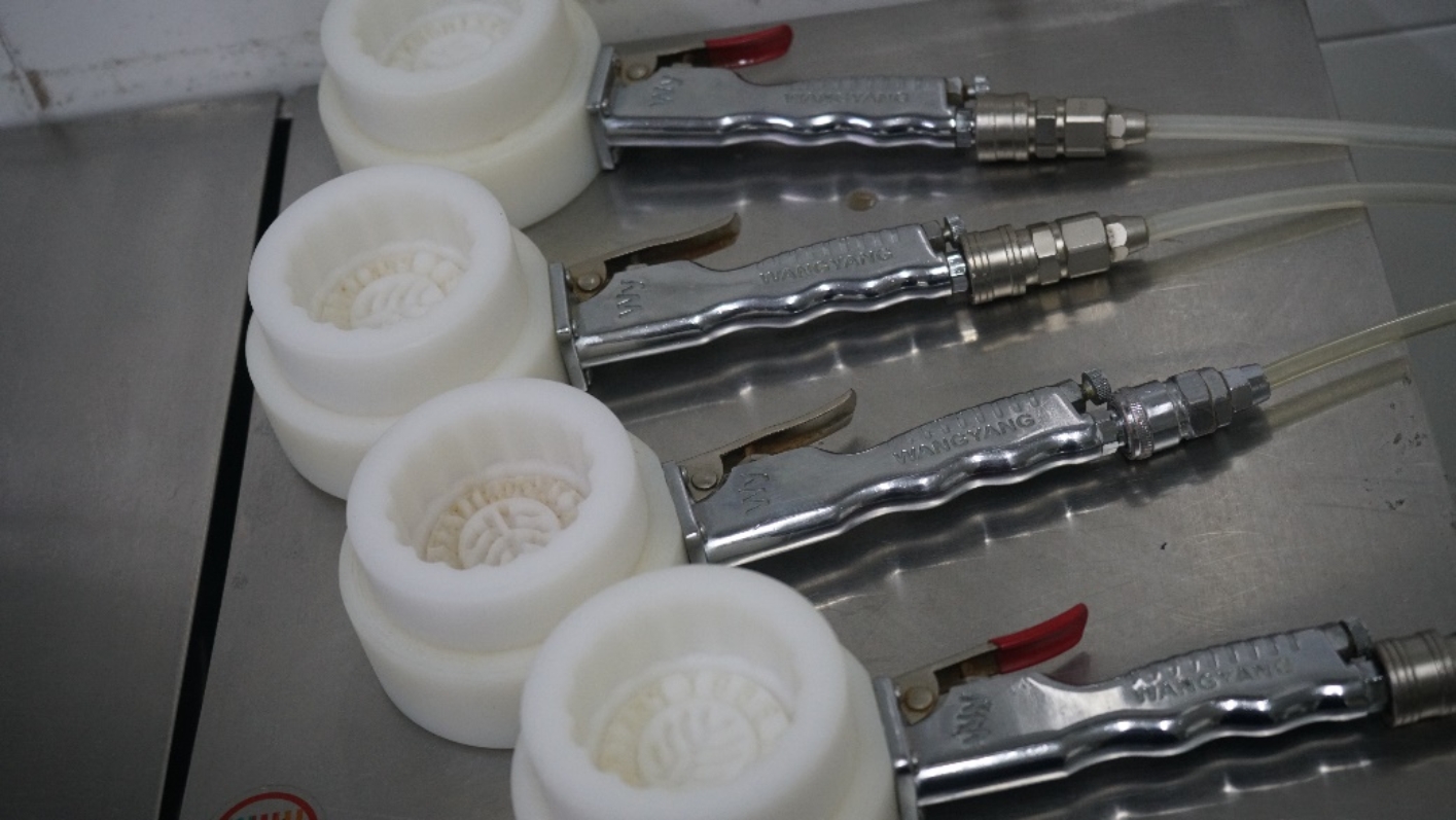 将包好的面团放入模具中,用手掌压实,使花纹更清晰美观。