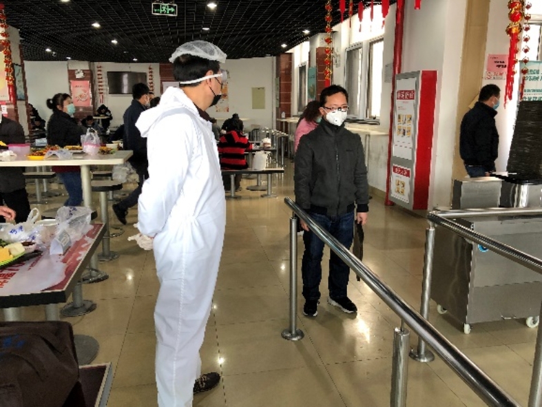 自春节假期以来,为做好餐饮保障和疫情防控工作,刘经理召集畅春园食堂各层负责人成立疫情防控专项工作小组,合理分配工作人员的防控职责,起草《畅春园食堂疫情防控八项规定》,严格落实餐饮中心新冠肺炎防控措施。查验就餐人员身份证件,并测量体温,对体温异常者禁止入内。固定自选区人员准入数量,禁止就餐者接触餐食、前厅员工采取全方位防护措施,从细节入手,减少与外界接触,确保供餐安全。