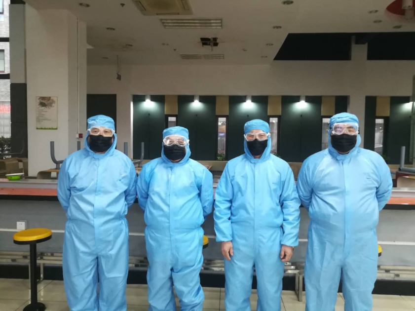 消毒消杀专项组四大金刚,从左至右,姜富森、张国财、刘广容、厚建卫