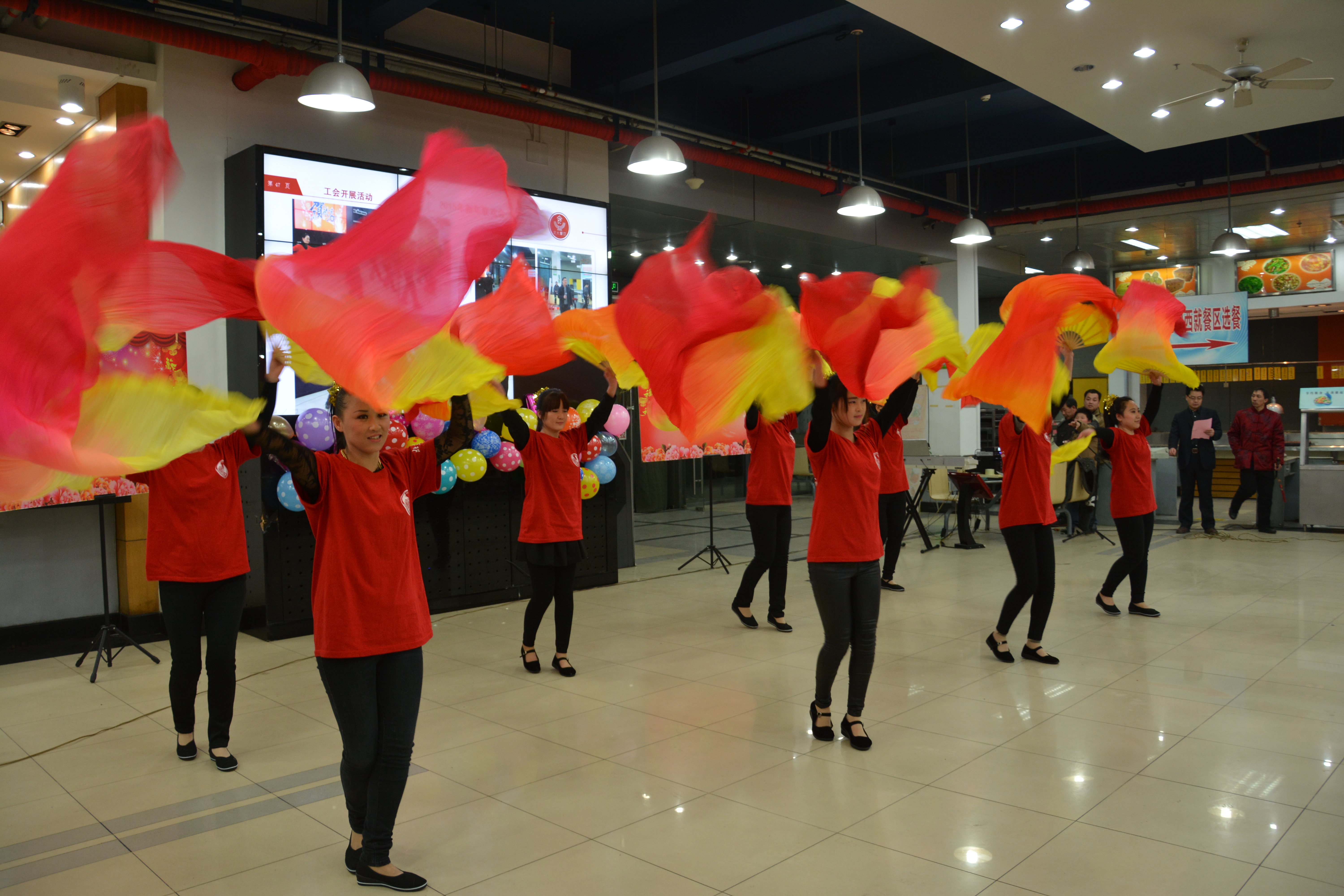 在现场观众期盼的掌声和欢呼声中,联欢会在喜庆欢快的扇子舞《好日子》中正式拉开帷幕,来自餐饮中心各食堂的8位演员用她们欢快热烈的舞步表达了餐饮人喜迎新春的愉悦之情。之后,餐饮中心工会主席的新年致辞给大家带去了节日的祝福,回顾收获的同时展望美好未来,让大家倍受鼓舞。
