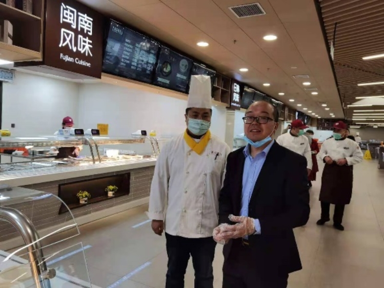 郝平考察家园食堂筹备现场
