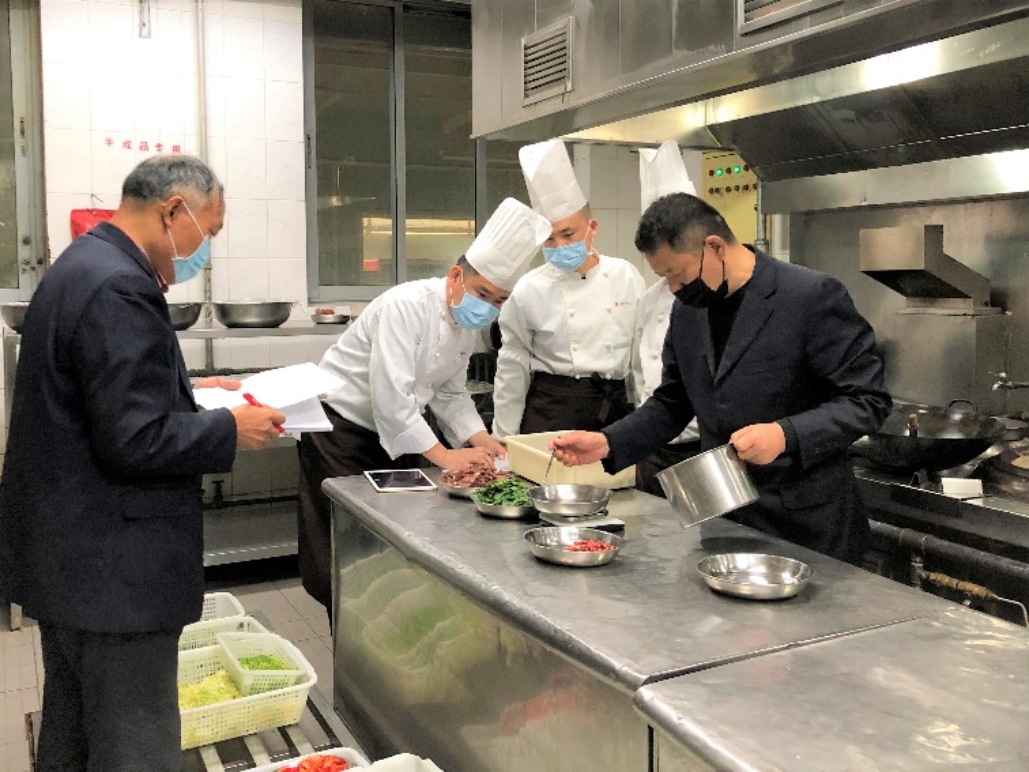 试餐期间,二层和四层厨师长卢岭山(左一)