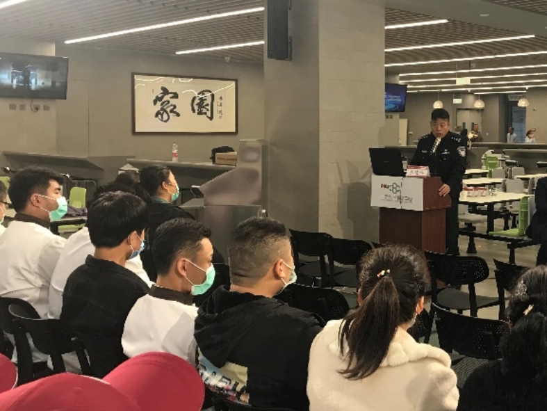 燕园派出所张警官为新员工进行
