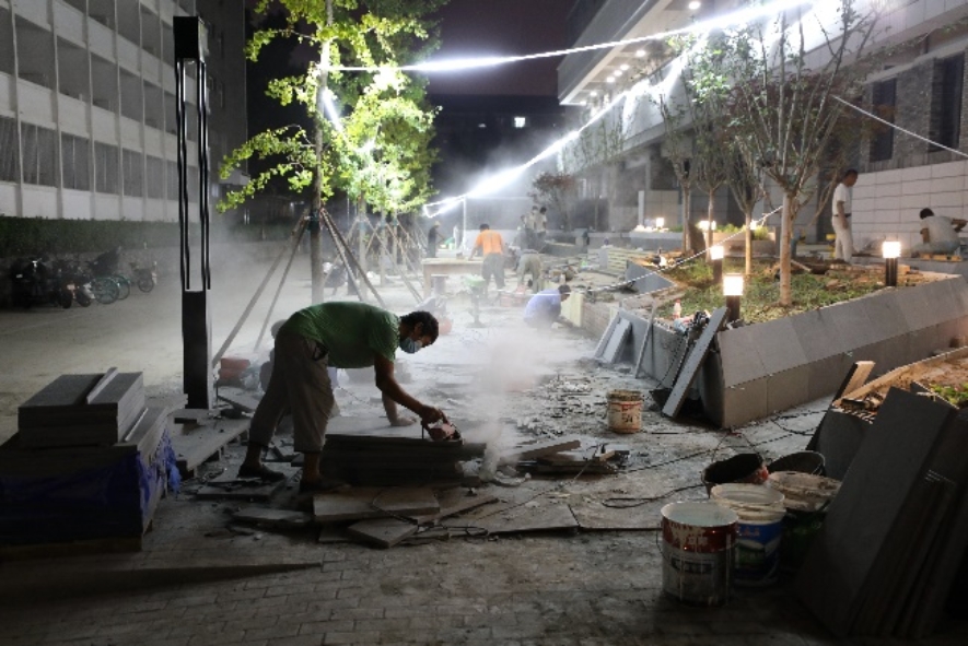后勤巡查督导组现场督导,工地的师傅们不辞辛苦,不分昼夜,家园食堂的施工建设全面提速,决战决胜工程建设冲刺阶段。
