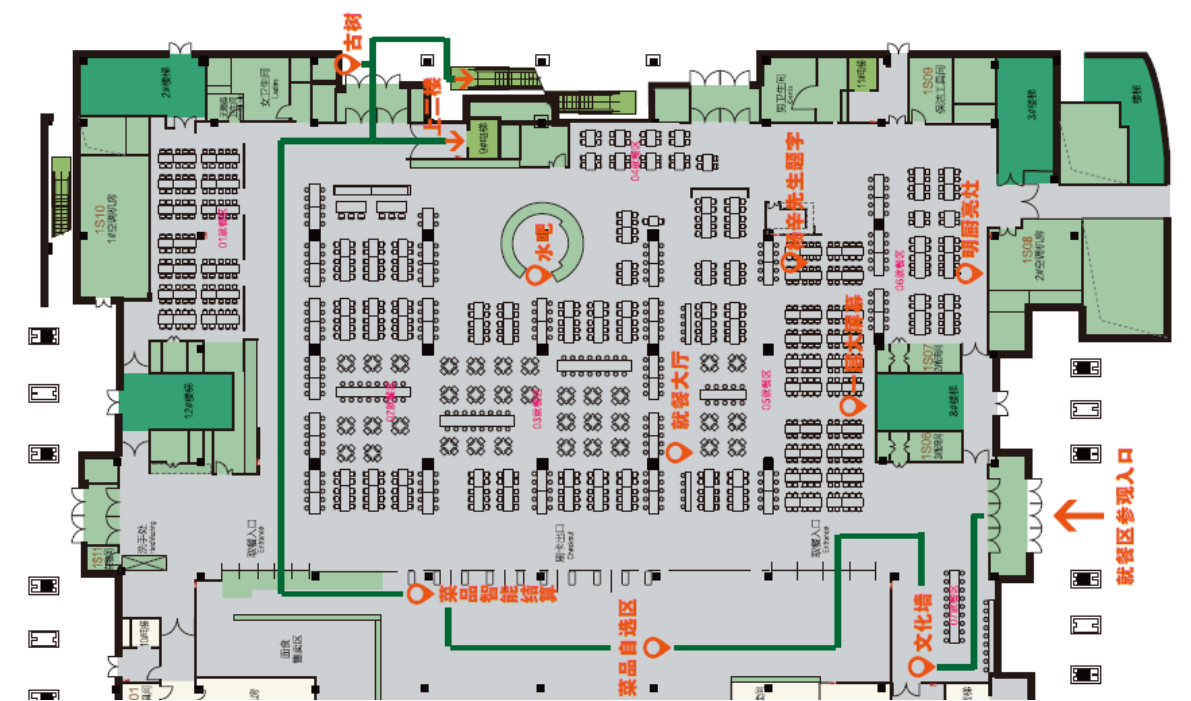 顺应校园空间多元化、复合化趋势,家园食堂自筹备伊始,就被定位为集餐饮、聚会、研究、学习、展示、活动为一体的现代化、智能化和综合性食堂。