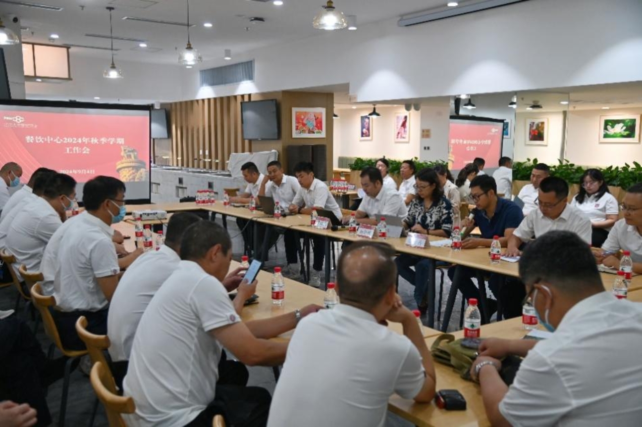 2024年9月4日,餐饮中心组织召开秋季学期工作部署会。中心领导班子、科室主要负责人和各食堂经理、厨师长等参加会议,会议由中心副主任陈贵兵、尹双石分别主持。