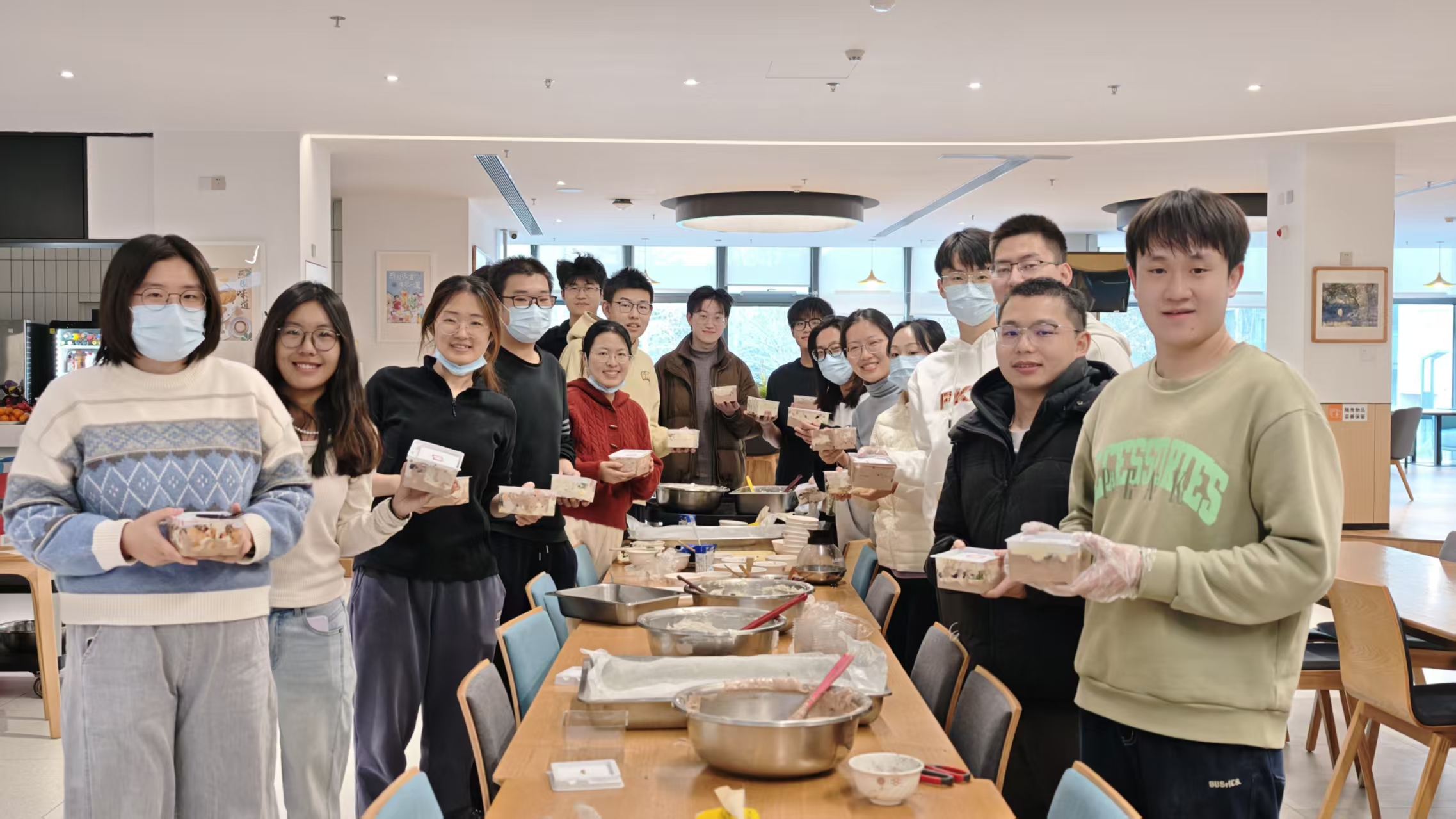 馨园食堂则携手集成电路学院、智能学院研究生会,于12月21日下午在食堂一层大厅组织开展“提拉米苏DIY制作”体验活动。近30名同学积极参与。食堂提供了拇指饼干、咖啡液、多种风味奶酪糊等丰富原料,食堂师傅细致讲解制作步骤后,同学们动手实践,创意搭配,在协作中完成各具特色的甜品。活动现场温馨而热烈,大家在体验制作乐趣的同时,也增进了对食堂工作的了解。