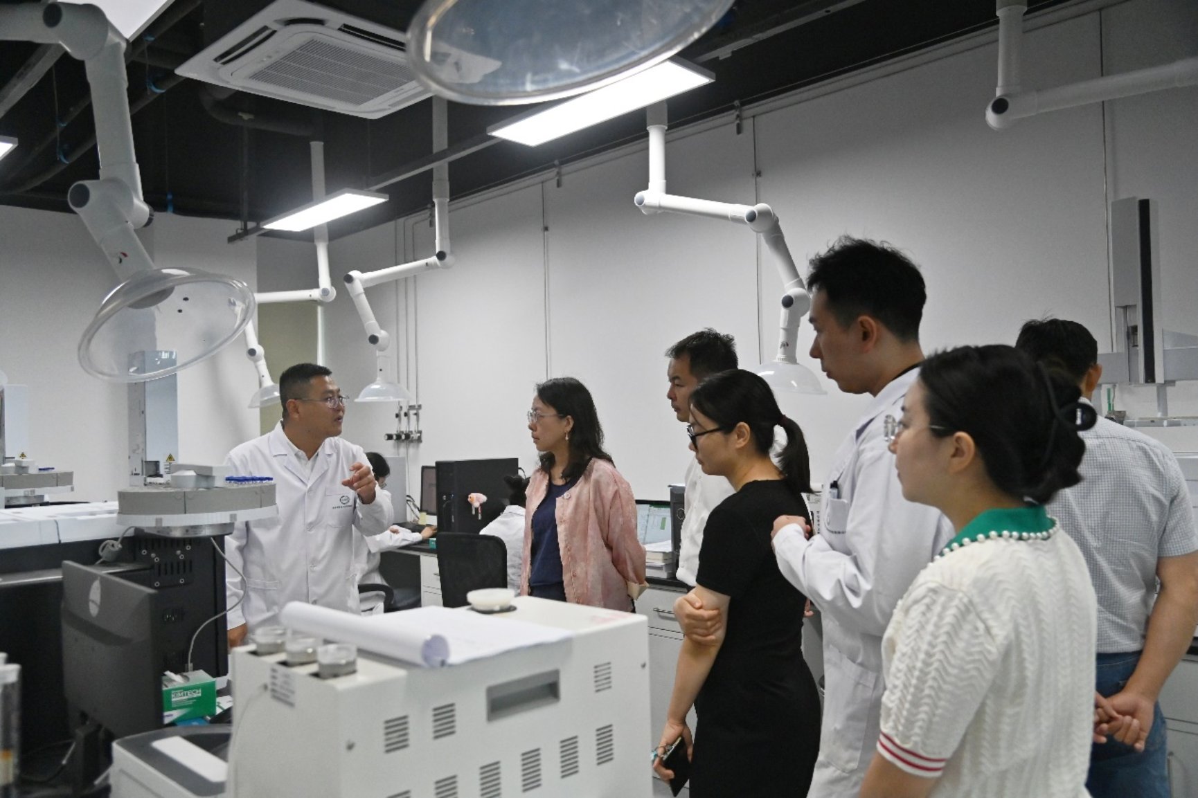 首先,调研组参观了北京市粮食科学研究院有限公司食品安全监测实验室。在分样室、留样室等核心区域,通过技术人员专业讲解,系统了解食品检测标准化流程;在气相室、元素分析室等专业实验空间,现场观摩检测设备的技术应用,深刻体会到“把检测做在风险前头”的科学防控理念。