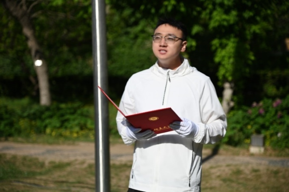 作为此次活动的护旗手,护卫着鲜艳的五星红旗,注视着国旗迎着朝阳冉冉升起,迎风飘扬,内心充满了激动和自豪。心有所信,方能行远。北京大学作为五四运动的策源地,伟大的“爱国、进步、民主、科学”的五四精神也深深地感染着园子里的每一位青年,鼓励着我们不惧风雨、勇挑重担,扎实做好本职工作,不断加强服务意识,以真诚的服务回馈广大师生。