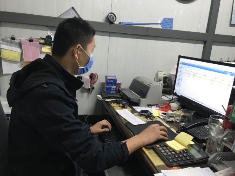 王仲持有电工职业资格证书,由于心思缜密、踏实肯干,又熟练掌握仓储管理的专业知识,因此被聘任为低值易耗库库房管理员。根据中心安排,王仲于2月1日(正月初八)提前返校。隔离期满后,王仲迅速返回工作岗位,防护物资采购成为他面临的最棘手的问题。由于防控要求,日常采购物资的市场均未营业,各开伙食堂每日却需要消耗大量消毒液、口罩等防护用品。王仲一方面想尽一切办法联系供货商补充货源,另一方面清点现有库存状况,做好配送方案。虽然低值易耗库因场地有限无法储存过多物资,但根据多年工作经验,过年前在餐饮中心的安排下,王仲储备了一批消毒泡腾片、医用口罩等物资,此刻都派上了大用场。