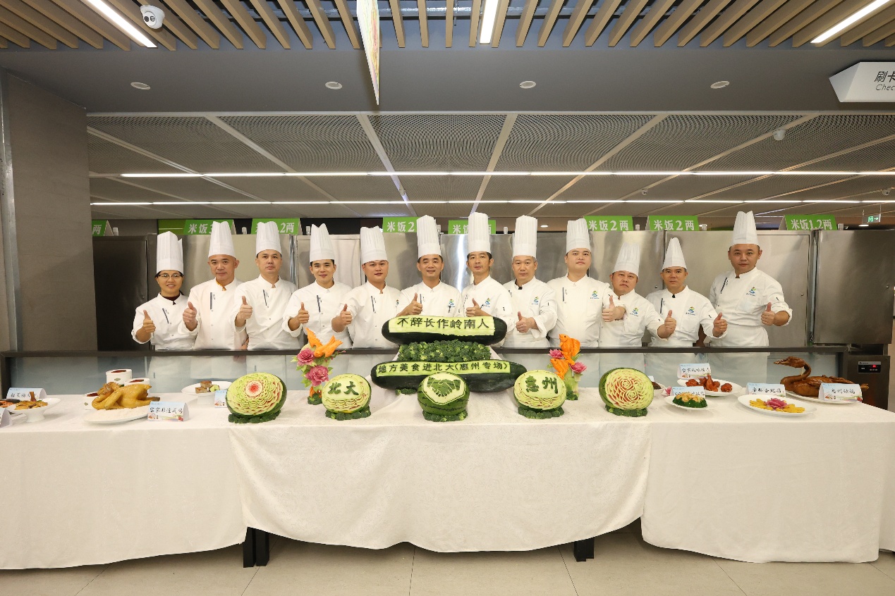 为保障美食的地道与品质,惠州市特别选派资深名厨领衔,组织惠州市饭店行业协会、惠州城市职业学院等专业厨师团队及非遗传承人参与,精心呈现盐焗鸡、横沥汤粉、岭南古法焖牛腩、客家腊味芋头糕等近20道经典惠州菜品。活动期间,食堂窗口前排起长龙,惠州美食深受北大师生喜爱。