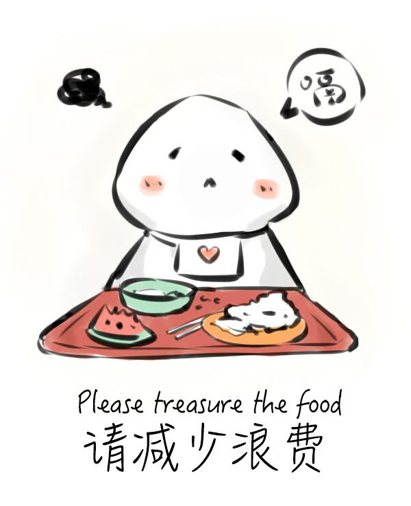 以上四组漫画元素丰富程度适中,形式较好,采用现在较为流行的漫画形式,人物形象富有特色。简约柔软的食堂团子人物,搭配可爱的中英文字体,让就餐者在严肃而不失温柔的劝告下做一个守规矩就餐者,让就餐者在温暖的食堂感受别样的小清新。