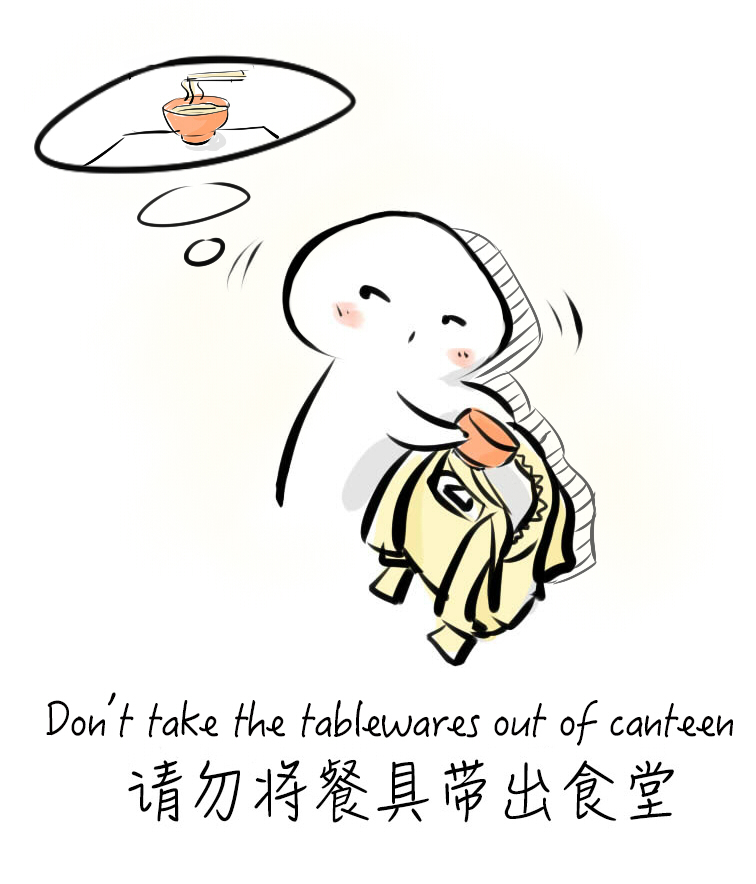 为加强餐饮中心文化建设,自2015年9月30日起,餐饮中心与北京大学学生会联合启动“我心中的北食堂”创意设计大赛,面向在校师生、校友和关注北京大学的各届人士公开征集餐饮中心食堂温馨提示系列主题漫画设计。设计要求:围绕以下主题重新设计文字,力求文字准确、生动、活泼,并应配有图案,图案要求简洁、生动、醒目,合理排版,图文呼应(可以是上图下文,也可以是文字嵌入图案内)。要求四个主题的图文风格一致,将来会统一制作张贴于食堂门口、售饭窗口及就餐大厅内。四个主题如下: